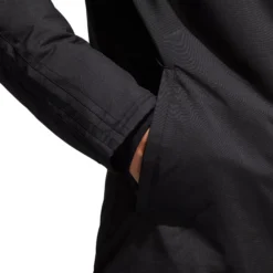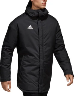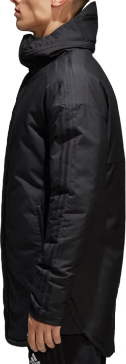 Flawlessly make your shot on goal, despite cold conditions, in the adidas® Men’s Soccer Stadium 18 Parka. This jacket has performance fabric that keeps you warm and cozy, while details like a hood with storm flap and a curved back hem with snap ensure you have enough coverage to block out the cold. Dropped shoulders add to the comfort, and front zip pockets store your small valuables.
