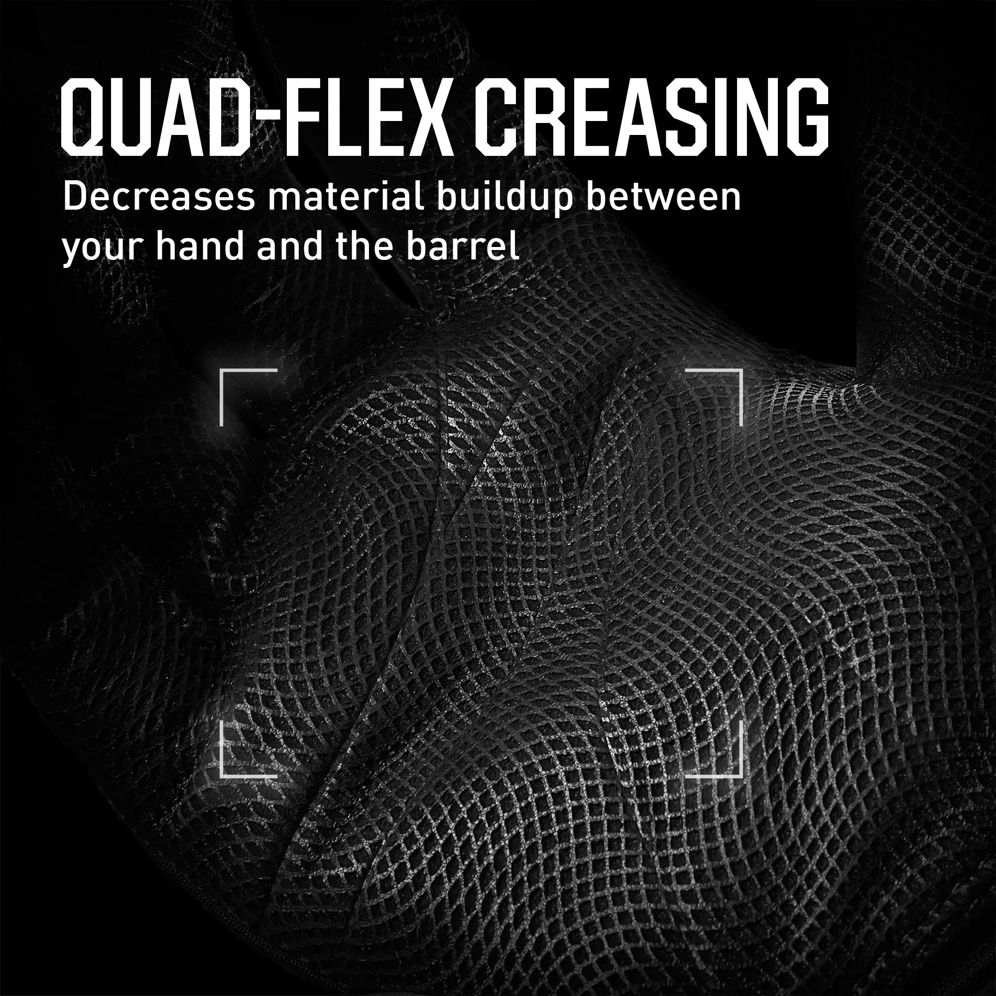 Quad-flex creasing anticipates flexing of your palm for a perfect fit around the bat