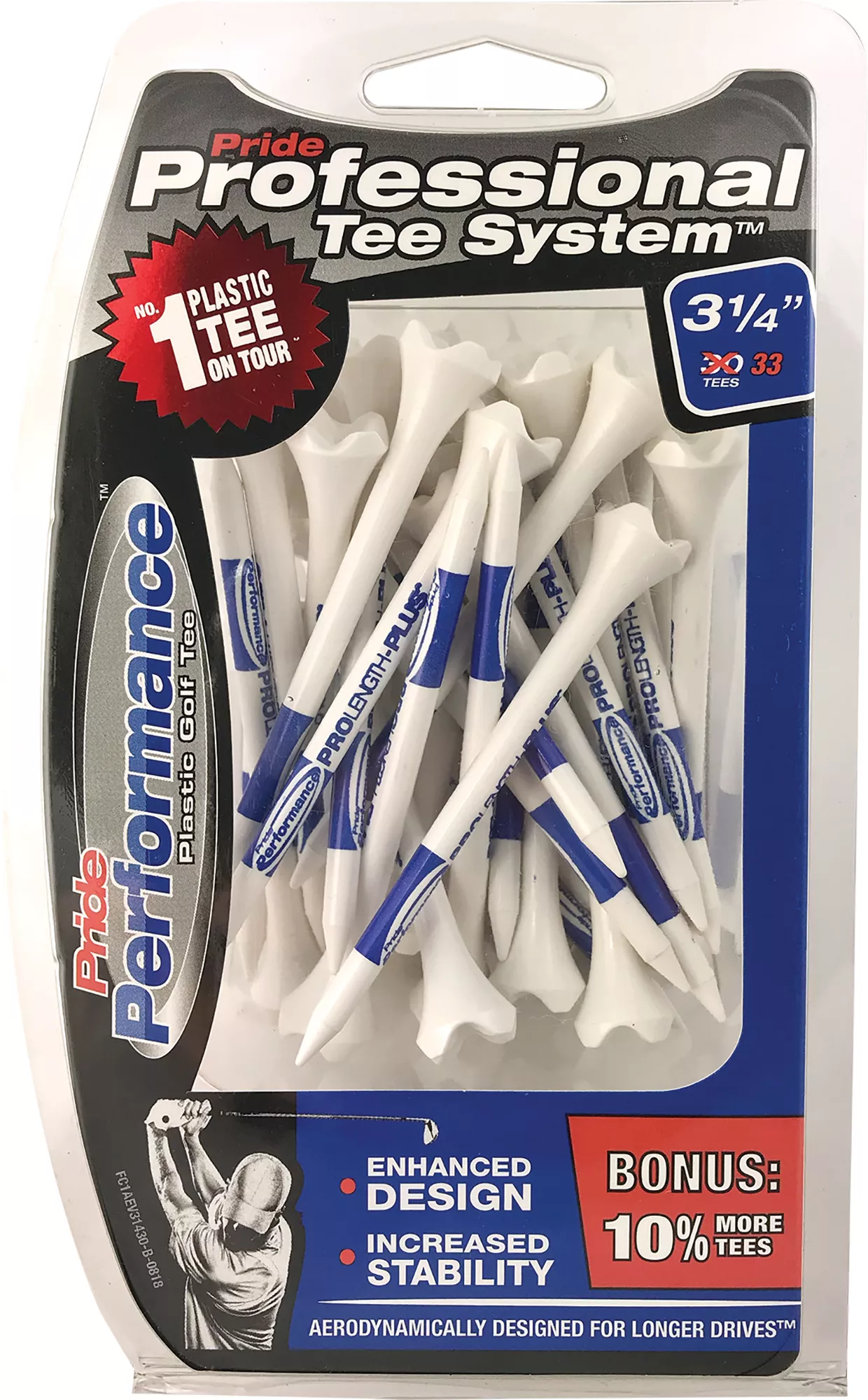 Pride® Professional Tee System Evolution 3.25″ Golf Tees are plastic performance tees engineered with special low-resistance tips that create less friction between the golf ball and tee resulting in longer drives.