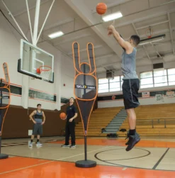 - Encourages proper passing or kicking trajectory over the raised arms