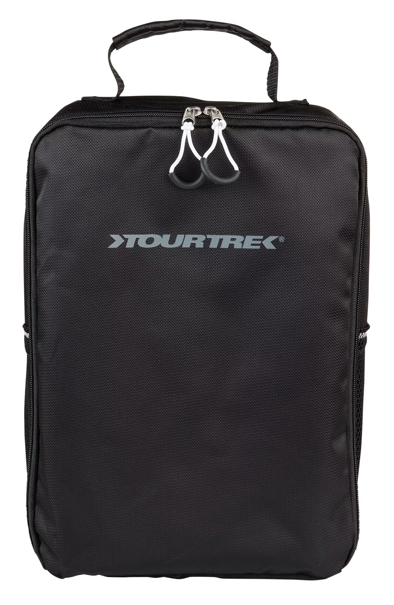 Protect and transport your shoes in style with the TourTrek Golf Shoe Bag. Constructed with durable nylon, this bag also has mesh paneling to provide improved ventilation. The internal accessory pocket can store valuables, while also acting as the shoe divider and the carrying handle provides convenient transportation.