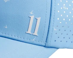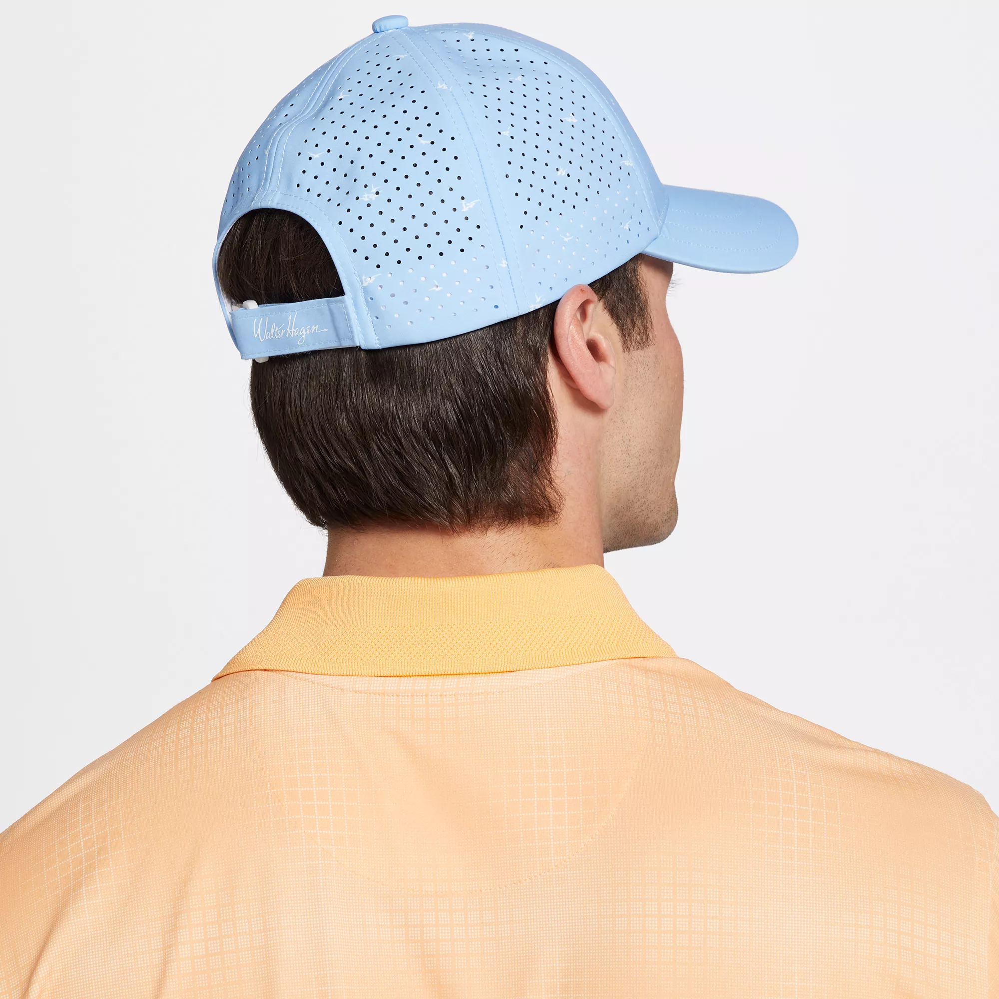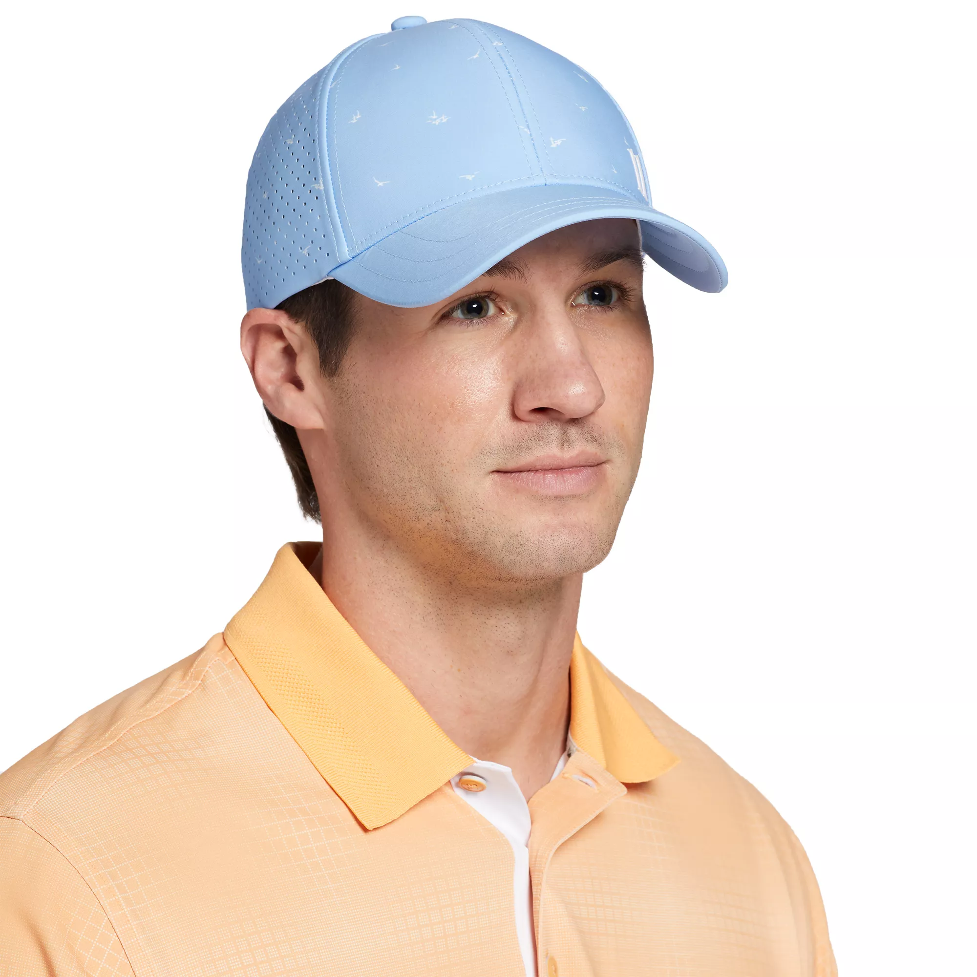- Curved bill with dark underside to help block out sun