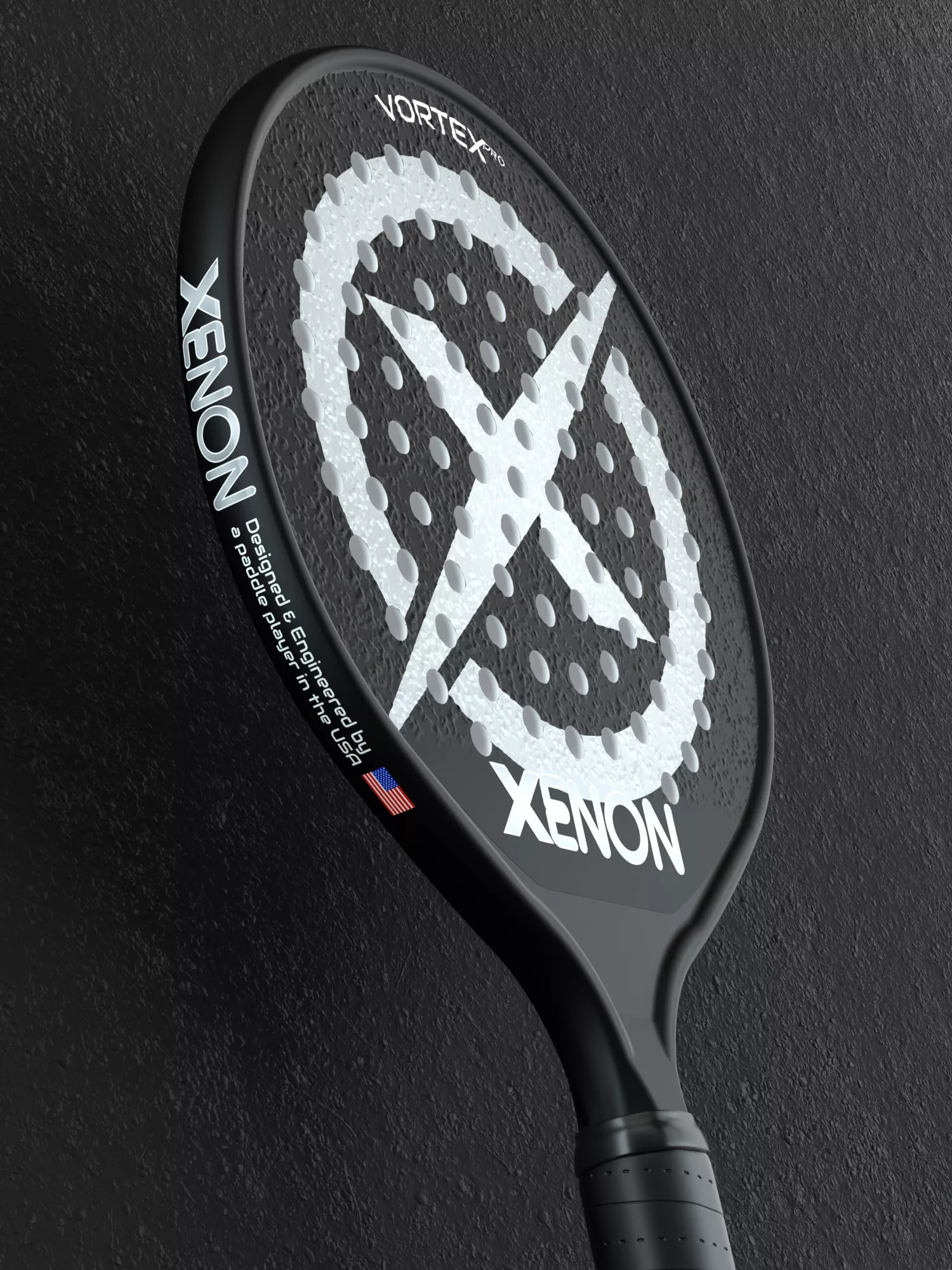 The Vortex Pro falls into the higher end of “average” weight paddles on the market, unlike head heavy paddles that FEEL heavy though, this paddle feels just right and will be ideal for strong players who like the heavier weight and power that it provides while maintaining all the other characteristics that Xenon paddles are known for.