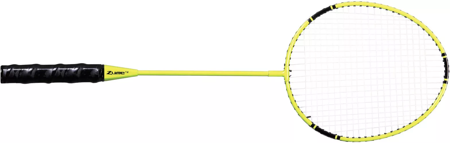 Get competitive at your next outdoor party with the Zume Games® Badminton Set. Perfect for backyard bashes or beach parties, this badminton set is highly portable and easy to set up anywhere. Featuring a regulation height net, it can be set up on any surface without tools or stakes. It’s equipped with 4 rackets for doubles or singles play. The 2 shuttlecocks ensure that you’ll always be ready to play. Take it on-the-go in its carrying case.